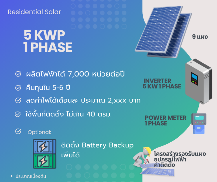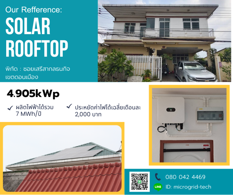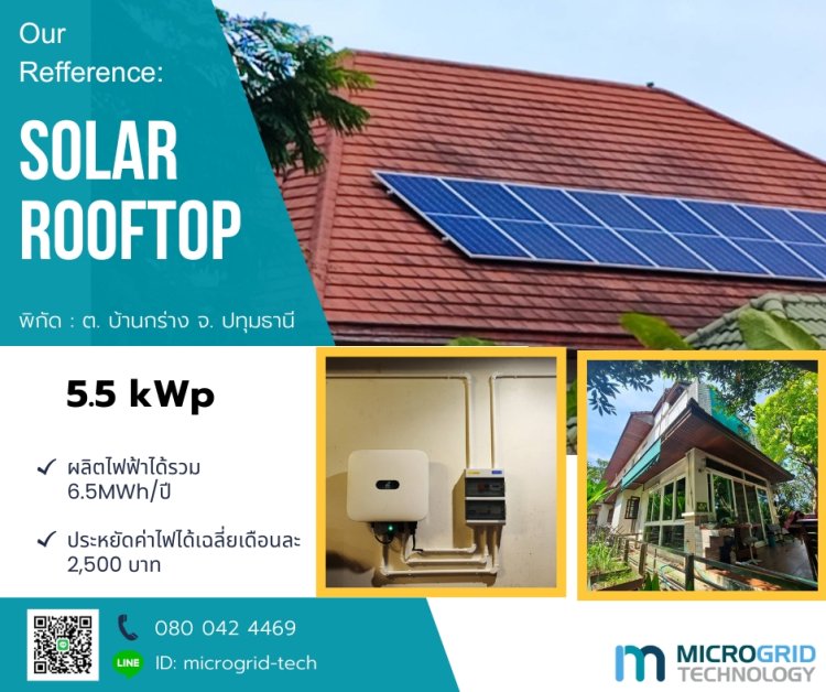 ระบบผลิตไฟฟ้าพลังงานแสงอาทิตย์ ติดตั้งบนหลังคา สำหรับบ้านพักอาศัย (Solar Rootop for Residential)