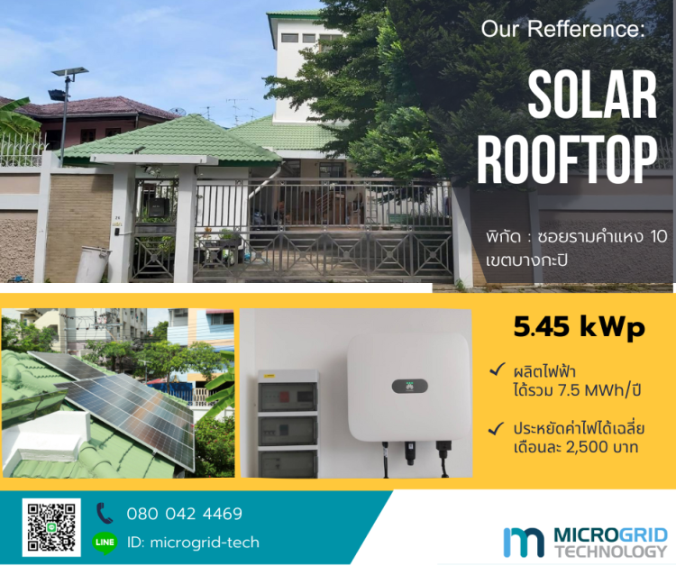 บริษัท ไมโครกริด เทคโนโลยี จำกัด มีระบบพร้อมรองรับทุกความต้องการให้แก่บ้านแต่ละหลัง โดยระบบมาตรฐานของเรา คือ Green Roof Package ขนาดติดตั้ง 5-10 kWp รวมถึงเลือกระบบแบบ Customize เฉพาะความเหมาะสมของบ้านแต่ละหลัง ติดตั้งได้ตั้งแต่ ขนาด 3-20 kWp